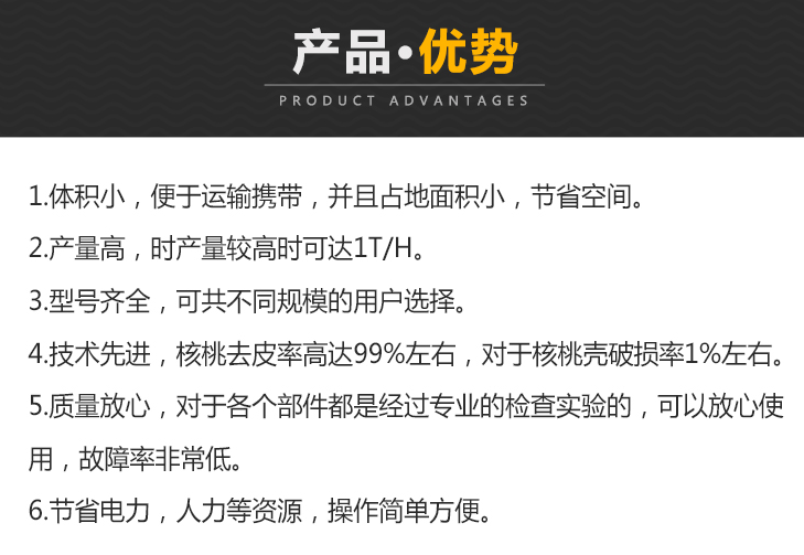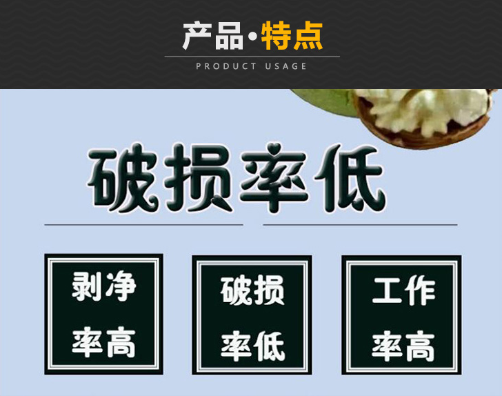 2、本設(shè)備脫凈率高于99%,核桃殼破損率小于0.5%。適用于小型加工企業(yè)或核桃加工經(jīng)營商戶。